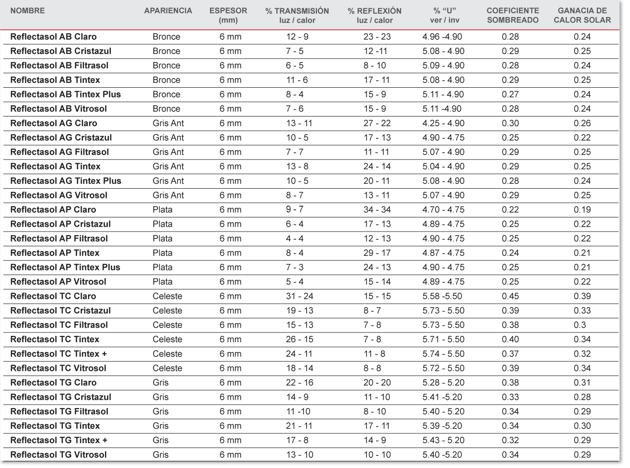 TEMPLEX® se produce sobre cristal flotado CLARO , de COLOR y PYROSOL. En el caso de REFLECTASOL deberá templarse previo al proceso reflejante; y debido a que TEMPLEX® no puede ser modificado en forma o tamaño, la piezas deberán cortarse a la medida especificada, perforarse, biselarse, y/o grabarse antes de procesarlo.